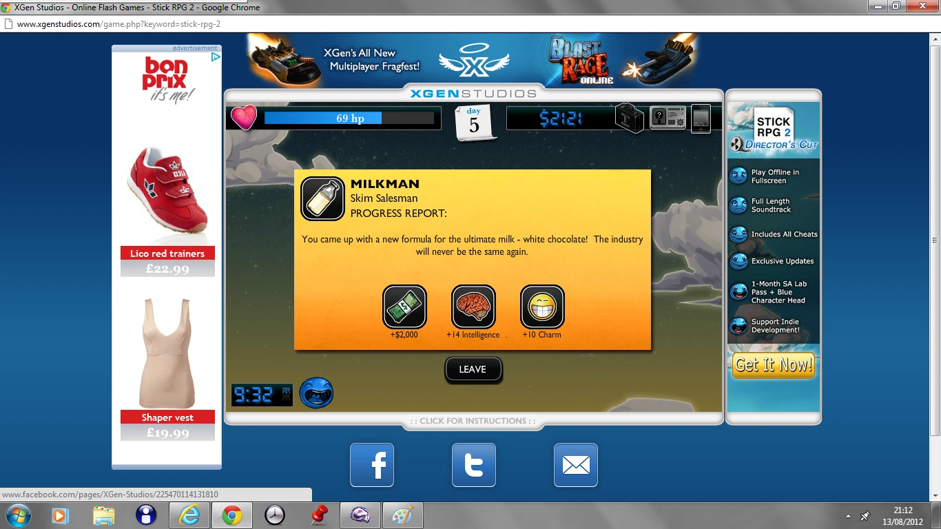 "Your genius marketing campaign took off like wildfire! 'Just milk it' sells itself." (+11 Intelligence)