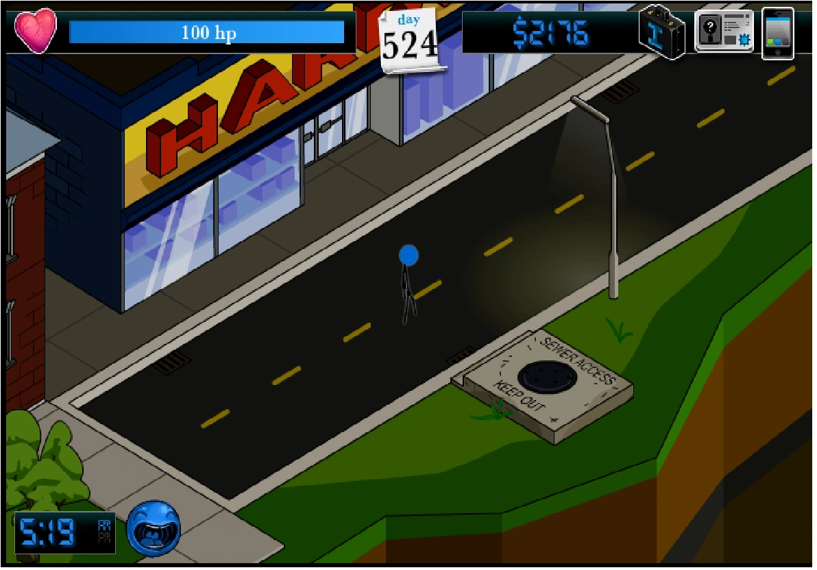 The Sewer People are a street gang who can be usually found on the Fourth Island of Paper Thin City, initially found to be infesting the entire island, and can appear in the Third and Second Islands as well. They are infamous among residents in Paper Thin City, with some describing the Sewer People as gruesome and merciless. Their main base can be found in the Sewer Entrance across the Hardware Store, but one can't access it until they have acquired the Sewer Key.